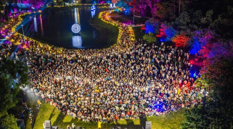 中秋三天連假期間,還有街舞冠軍團體「築夢者」、鍋爐爺爺與柏青哥等接力演出,現場熱力不斷;另還有近60攤位的「奇幻市集」同樣人潮爆滿,藝術手作、特色餐飲與發光蘑菇座椅,讓大小朋友邊逛邊拍,體驗滿滿童趣氛圍。