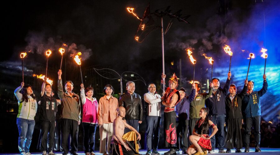 今晚開幕典禮由「即將成真火舞團」精彩擔綱,團員楊立微曾登上英國大型選秀舞台,以精湛足技與獨創火桌秀驚豔全球。團隊特別獻上 15 分鐘限定作品《馬祥厚運,火耀新北》,表演者「以烈火神劍為筆、中港水域為紙」,透過高難度劍舞轉動,將力與美融合為一,具象化地為市民「轉動厚運」。赤紅火光與河岸光影交織,熾熱火焰穿梭於夢幻燈海間,呈現水火交融的視覺震撼,華麗揭開光雕展序幕。