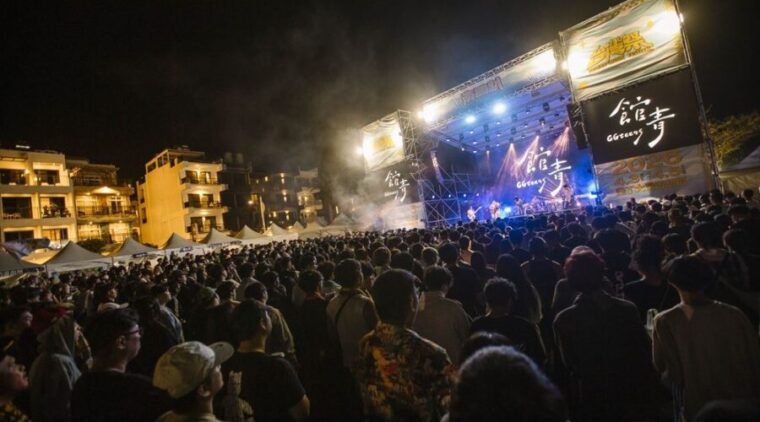 晚間登場的演出同樣熱力四射,由八青哥率先開場點燃氣氛,接續由公館青少年接力飆歌,現場情緒持續升溫,隨後登場的美秀集團更是一出場就引爆全場,超過萬名樂迷齊聚大灣遊憩區,熱情氛圍也感染周邊民宿,二、三樓陽台上可見不少歌迷走出房間隨著節奏搖擺、揮手合唱,最後DJ YU From慶記KTV延續熱度,播放多首臺灣熱門金曲,讓舞台前到街區高處瞬間成為一場震撼人心的戶外K歌盛宴。