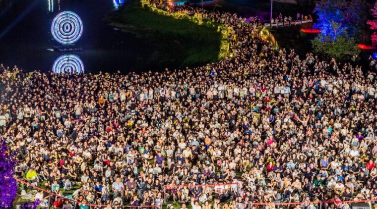 展期進入最後週末,北香湖持續湧入觀賞人潮,18日晚間舉行的閉幕演唱會邀請梁文音、張語噥與陳勢安接力開唱,現場燈海閃爍、氣氛熱烈;隔日壓軸的「幻光特技馬戲秀」結合光影、音樂與肢體演出,為活動畫下精采句點。連日人潮也帶動周邊商圈與市集買氣,攤商笑稱「忙到來不及補貨」,光織影舞更從觀光活動升級為帶動地方經濟的城市品牌。
