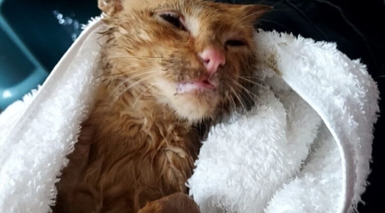 動保處獸醫師李建沛表示,貓咪因為天生皮膚及毛髮結構的問題,所以體表對水比較敏感,加上貓咪天生愛乾淨會自己理毛及清潔身體,所以全身毛髮濕透對貓咪來說是很緊迫的事情,因此小橘貓受困水溝中即使水面不高,他仍然不會自己涉水或游泳脫困,也因如此救援人員才有機會將小橘貓救援上岸,並帶回醫療中心治療,所幸這隻小橘貓經檢查後無外傷、消化道及呼吸道均無異樣,在加強保暖、餵食營養品及輸液治療後,精神、食慾及身體機能已恢復正常,很高興牠找到了幸福溫暖的家。