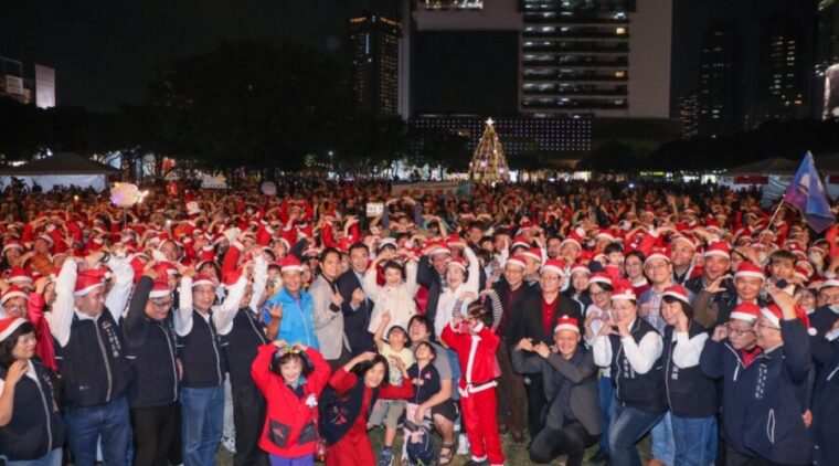 迎接溫馨平安夜,市府民政局攜手台中市教會發展策略聯盟協會舉辦「2025台中好聖誕」平安夜耶誕歡慶派對,今(24)晚在台中市民廣場溫馨登場,1,088名身穿紅衣的聖誕老公公齊聚歡唱《平安夜》,並分組步行至鄰近百貨商場、社區鄰里報佳音。市長盧秀燕頭戴發光聖誕髮箍親臨現場,與市民朋友一同高唱聖誕詩歌,共享平安夜感動與團聚的美好時刻,並祈願新的一年市民都能平安健康幸福。