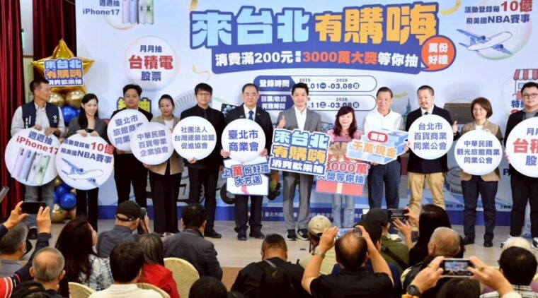 臺北市長蔣萬安今日(10)在「來臺北有購嗨!」記者會上,向全國民眾發出熱情邀約,配合中央政府普發現金政策,臺北市府推出「有購嗨!」系列活動,不僅延長活動時間,更祭出多重誘人獎項,包含千萬現金、最新iPhone、特斯拉電動車,甚至還有機會成為臺積電股東!