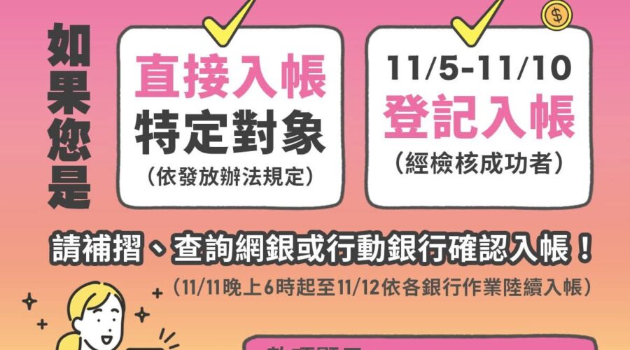 普發現金11月10日前登記者11月12日入帳!官網自11月13日起開放查詢登記結果