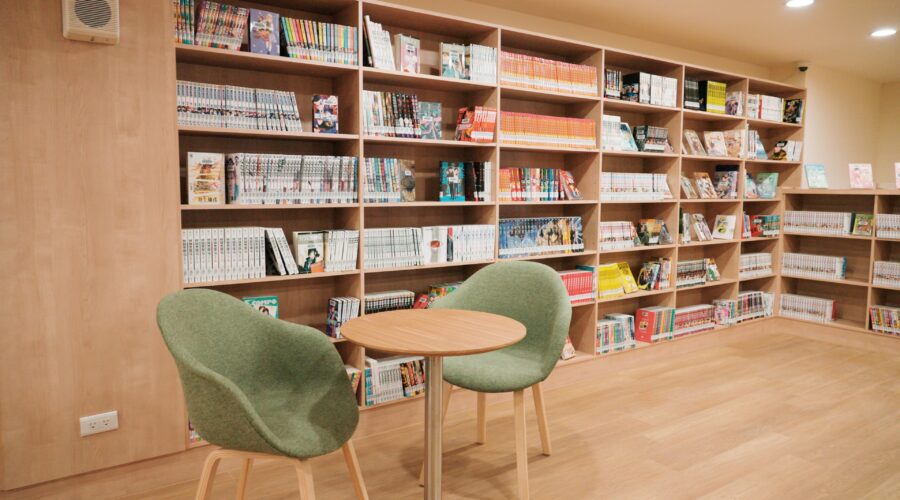 位於挑高樓層「漫畫區」,是漫迷專屬天堂,收藏經典與當前熱門漫畫,採取「完整全集數」系統化陳列,確保讀者追番過程不「斷坑」。搭配舒適座椅,提供Chill休閒氛圍,從經典大作到最新連載,讀者享受打破框架的閱讀體驗。