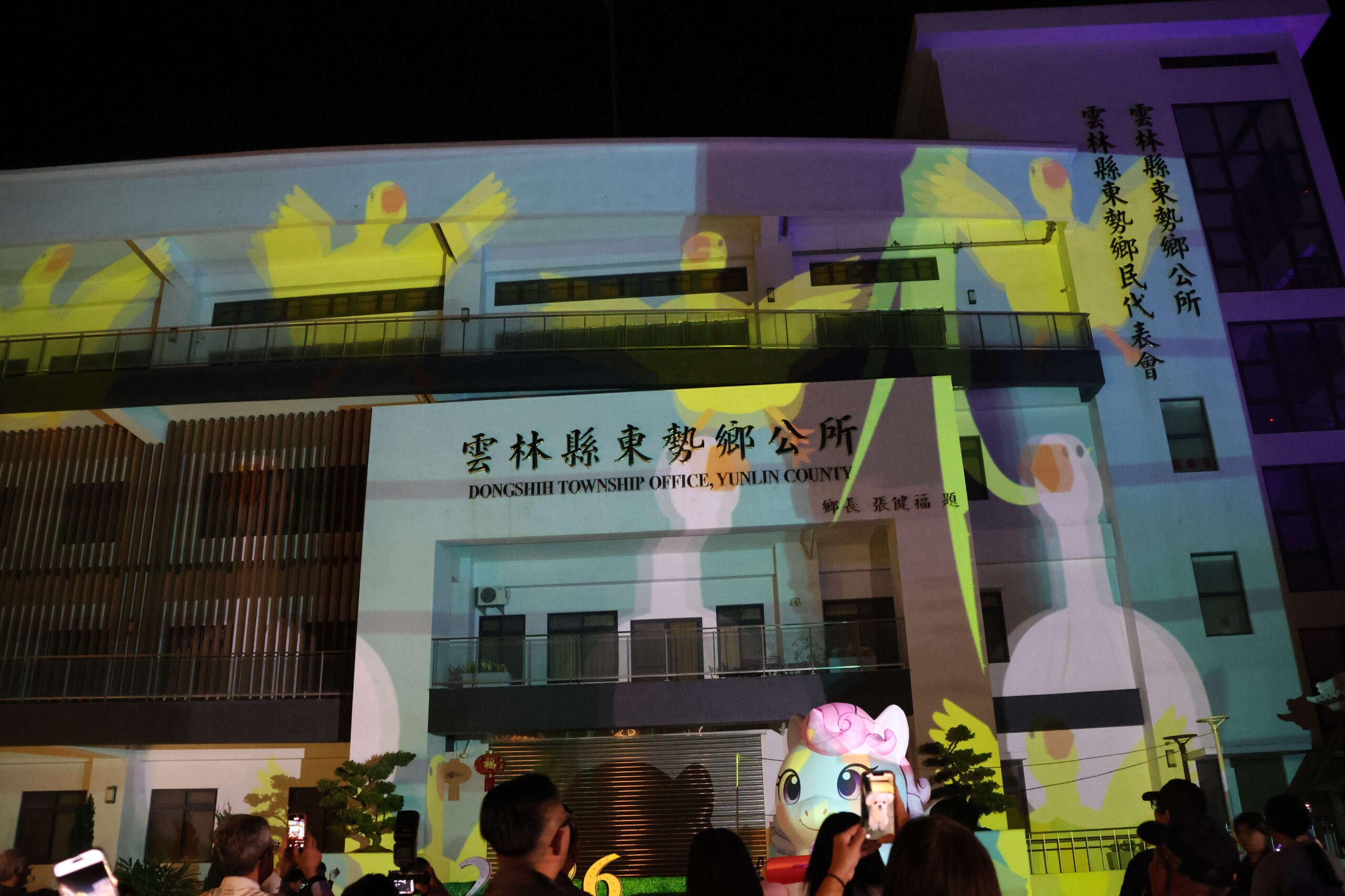 為迎接新春佳節,東勢鄉公所推出「2026雲林東勢光藝節」,以「Light 東勢做馬吉-福 Light 東勢」為主題,並規劃「馬力全開!Light up 新東勢」建築光雕展演活動,今(14)日晚間於東勢鄉公所新大樓廣場前,縣長張麗善、副縣長陳璧君、鄉長張健福、立委張嘉郡、丁學忠、劉建國、文觀處長謝明璇、議員吳蕙蘭、蔡孟真、蔡永富及多位地方代表等一同啟燈,點亮東勢夜間光影廊道及公所新地標,迎接充滿祝福與希望的春節。