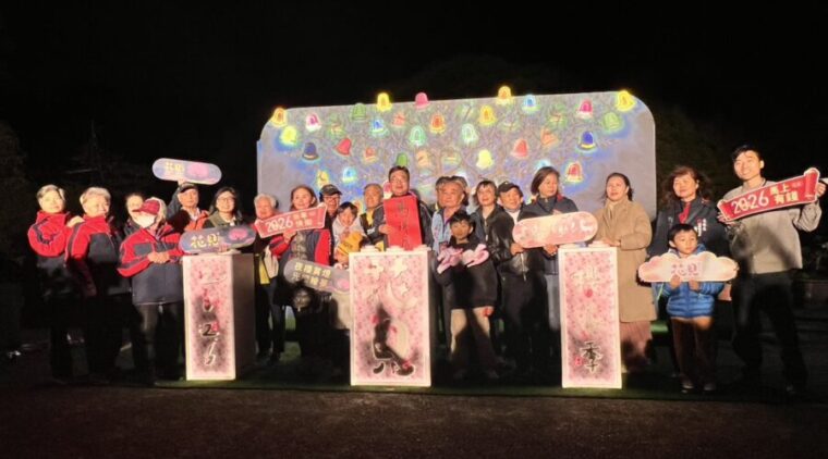 2026花見櫻花季今(29)日晚間於新北淡水無極天元宮由新北市副市長劉和然到場進行點燈儀式,並與淡水在地「身聲擊樂團」的熱鬧開場下,宣告年度春季賞櫻盛事正式啟動。今(115)年更邀請國際學生參訪體驗賞夜櫻,由外國人的視野來看臺灣春季賞花文化外,亦首度與國際知名繪本藝術家幾米的《閉上眼睛一下下》合作,除了將繪本場景搬進櫻花林,結合淡水天元宮最獨特的三色櫻打造5座互動場景,並推出「淡水花見散策攻略All in One」摺頁以及各式週末DIY工作坊與「櫻花慢旅」走讀活動等,邀請大家即日起至2月11日止,一同來淡水天元宮感受櫻花魅力。