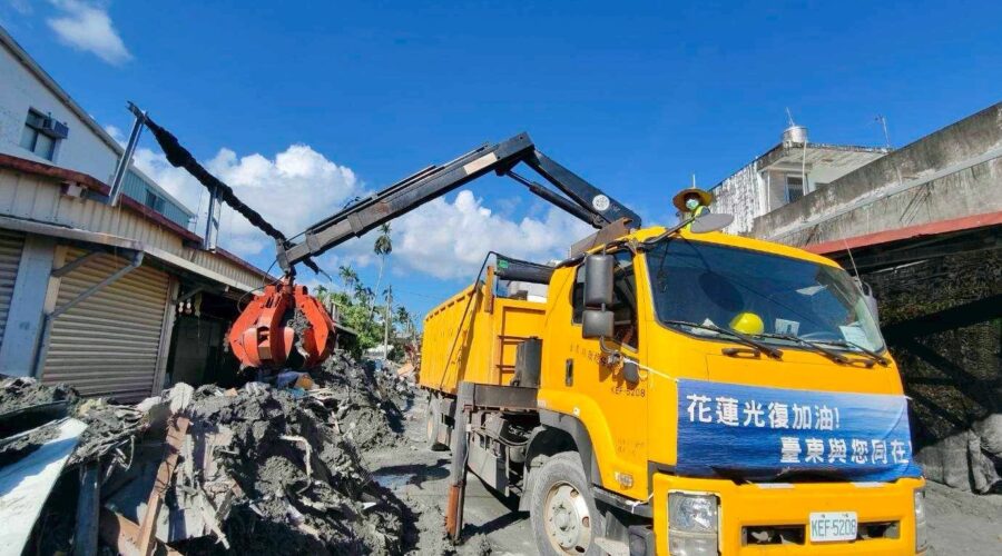 臺東出動抓斗車、清溝車馳援  攜手花蓮投入災區環境復原