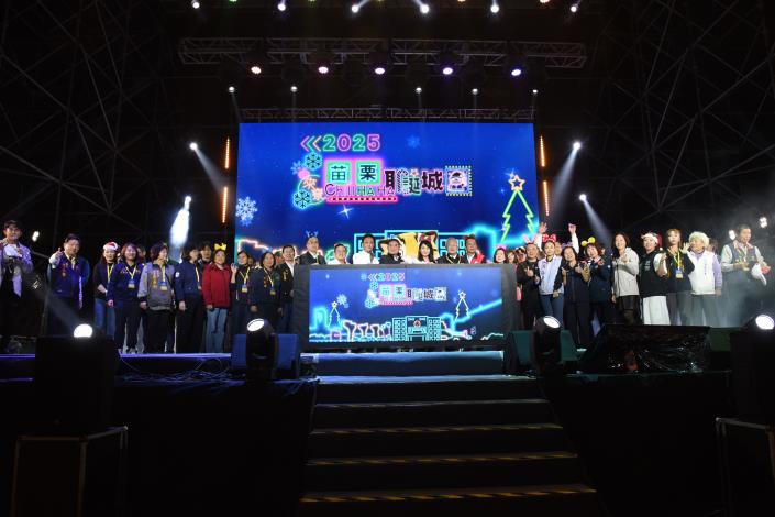 苗栗縣政府主辦的年度壓軸大型節慶「2025苗栗耶誕城」系列,19日晚在竹南運動公園熱鬧開城後,啟動以「來尞 Chill HA HA」為主題,首晚有澎澎、康康、徐懷鈺及彭佳慧等藝人接力演出,節目將延續到24日,一連6天每晚開唱的耶誕系列活動,結合音樂演出、燈光展演、市集與親子互動;縣長鍾東錦開城首夜盛情邀請全國民眾,到苗栗感受繽紛熱鬧的歲末時光。