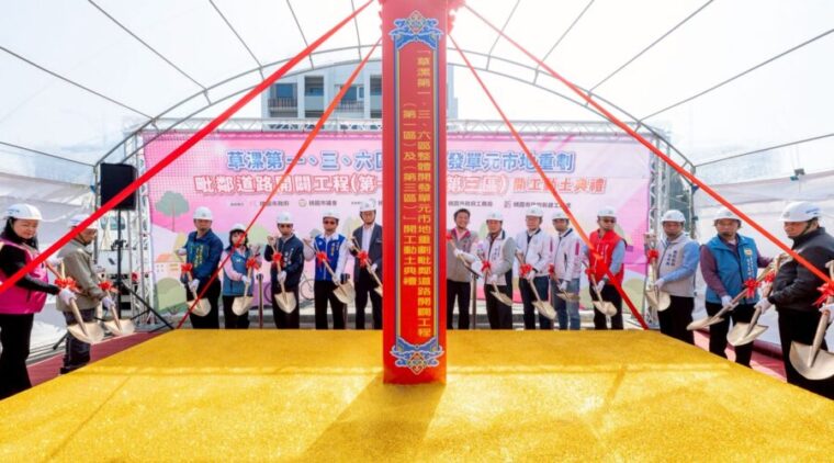 桃園市長張善政今(13)日下午前往觀音區,出席「草漯第一、三、六區整體開發單元市地重劃毗鄰道路開闢工程第一區及第三區開工動土典禮」。張市長表示,近年觀音草漯地區因周邊企業工廠聚集、就業機會增加,加上航空城拆遷戶移入,帶動人口成長與住宅及生活機能快速發展。