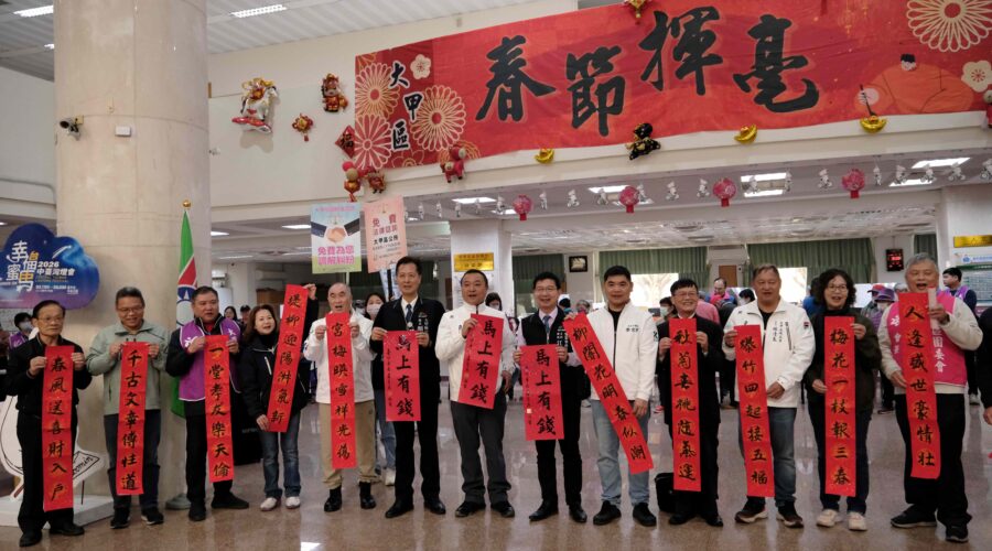 為推廣與傳承客家文化,台中市政府客家事務委員會攜手大甲區公所,今(7)日上午於大甲區公所大廳辦理「2026年大甲區『金馬賀春添喜氣』新年揮毫贈春聯活動」。現場邀請陳永泉、賴守乾、梁永河、黃春梅、蔡珠、柯玉端、林宗慶、蔡銘松、張淑眉、張宏靖、黃銀河、鄭麗雲、柯榆宏、紀淑貞、張連香等15位知名書法家齊聚揮毫,將充滿客家風情的新年祝福帶到海線大甲,與市民朋友一同「添喜氣、慶新年」。