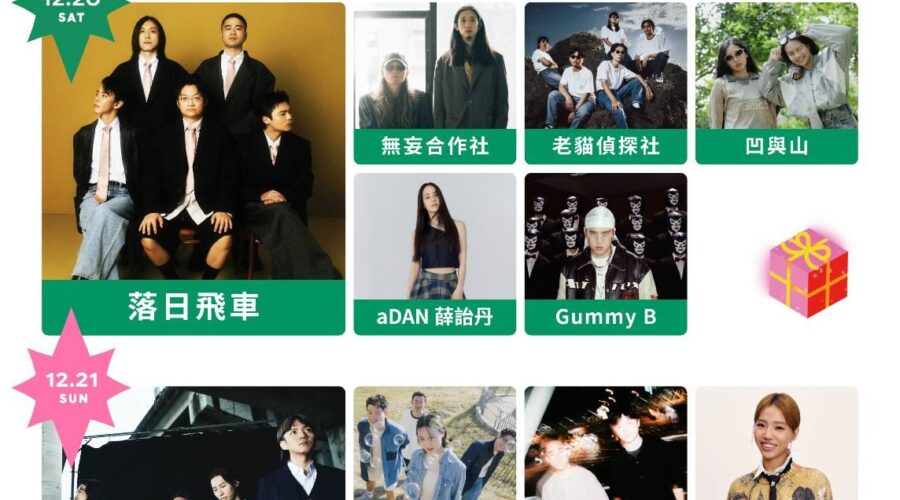 接著,更多實力派歌手與樂團也將接力登場,包含高雄子弟兵洪佩瑜、滅火器Fire EX.,指標性樂團─美秀集團、傻子與白痴、麋先生MIXER,金曲級歌手─韋禮安、鄭宜農、aDAN薛詒丹,以及近期於電視節目《樂團祭》展露頭角的庸俗救星、老貓偵探社、Blueburn等人氣新秀。