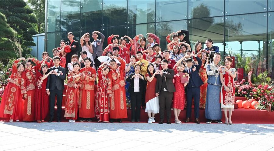 2025彰化縣聯合婚禮活動以中式婚禮為主題,今(29)日在永靖鄉成美文化園盛大舉行,彰化縣長王惠美為42對新人證婚,在所有貴賓及親友的見證下,為新人的愛情獻上祝福,在這個大喜的日子,祝福所有才子佳人,雙雙對對、萬年富貴、早生貴子,永浴愛河、百年好合,縣府也推出許多政策希望讓彰化年輕朋友,安心生、放心養,幸福滿滿。