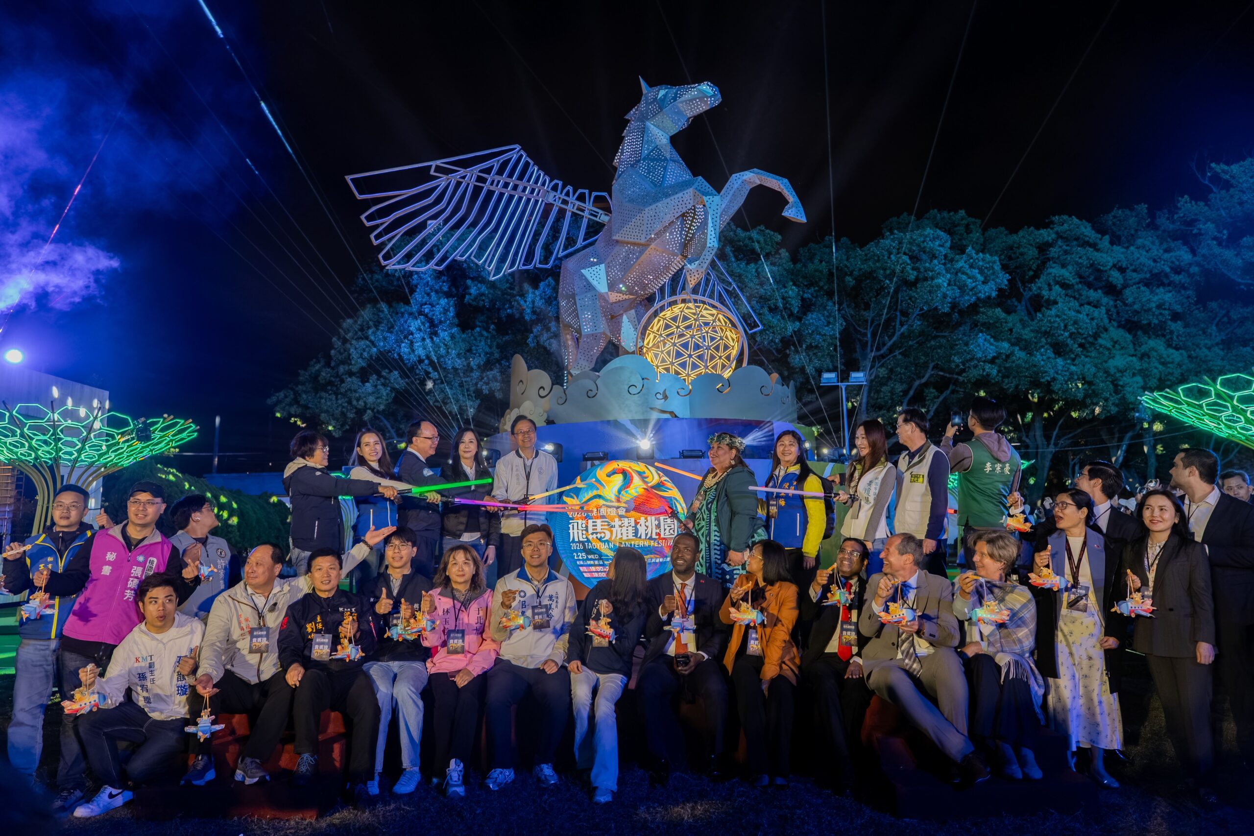 桃園市長張善政今(25)日晚間於桃園區虎頭山創新園區,出席「2026桃園燈會-飛馬耀桃園」開燈儀式。張市長表示,延續去(114)年辦理台灣燈會的成功經驗,市府團隊秉持同樣嚴謹態度籌辦今(115)年燈會,活動自即日起至3月8日止,以「飛馬耀桃園」為主題,每晚皆安排豐富精彩的燈飾展演與系列活動,邀請民眾共度璀璨夜晚。