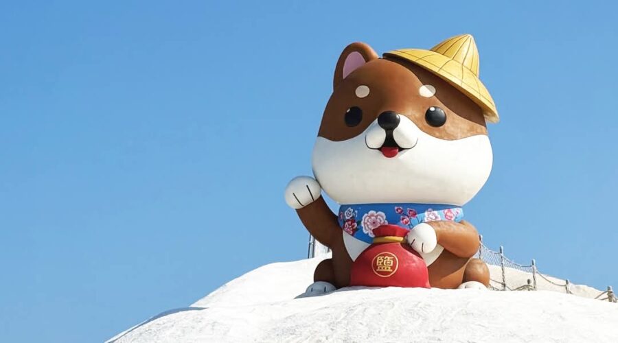 臺鹽公司董事長丁彥哲表示,柴犬在台日文化中象徵忠誠與守候,與七股鹽山多年來守護在地記憶的精神相呼應。今年以柴犬為主角,希望讓遊客在這座宛如「小雪山」的鹽山上,感受陪伴的力量。主角「鹹DOG DOG」以鹽工造型亮相,戴著斗笠、抱著鹽包,圓滾滾的模樣彷彿鹽山的小小守護員,以最療癒的笑容迎接新的一年,把「柴(財)」運與祝福傳遞給每位旅客。